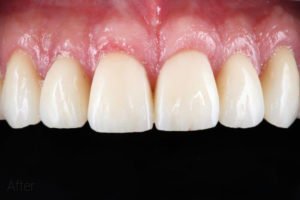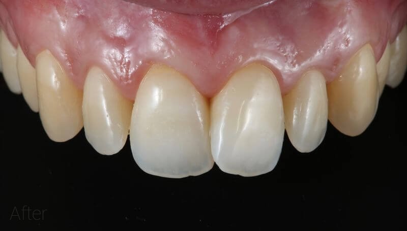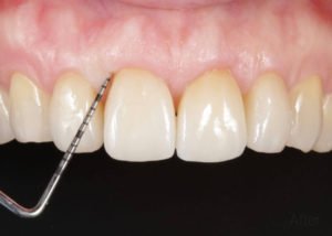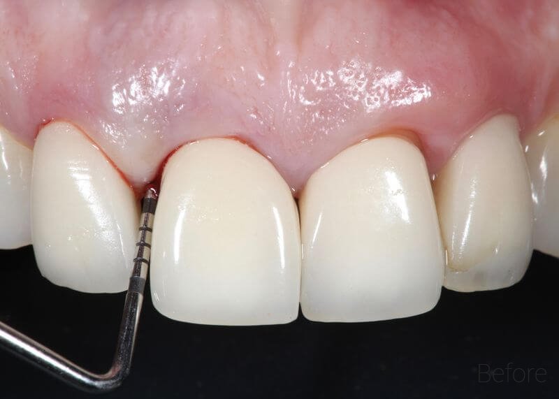The presence of the pocket created a retraction of the gums and the patient wasn’t happy anymore with the aesthetics of her smile.